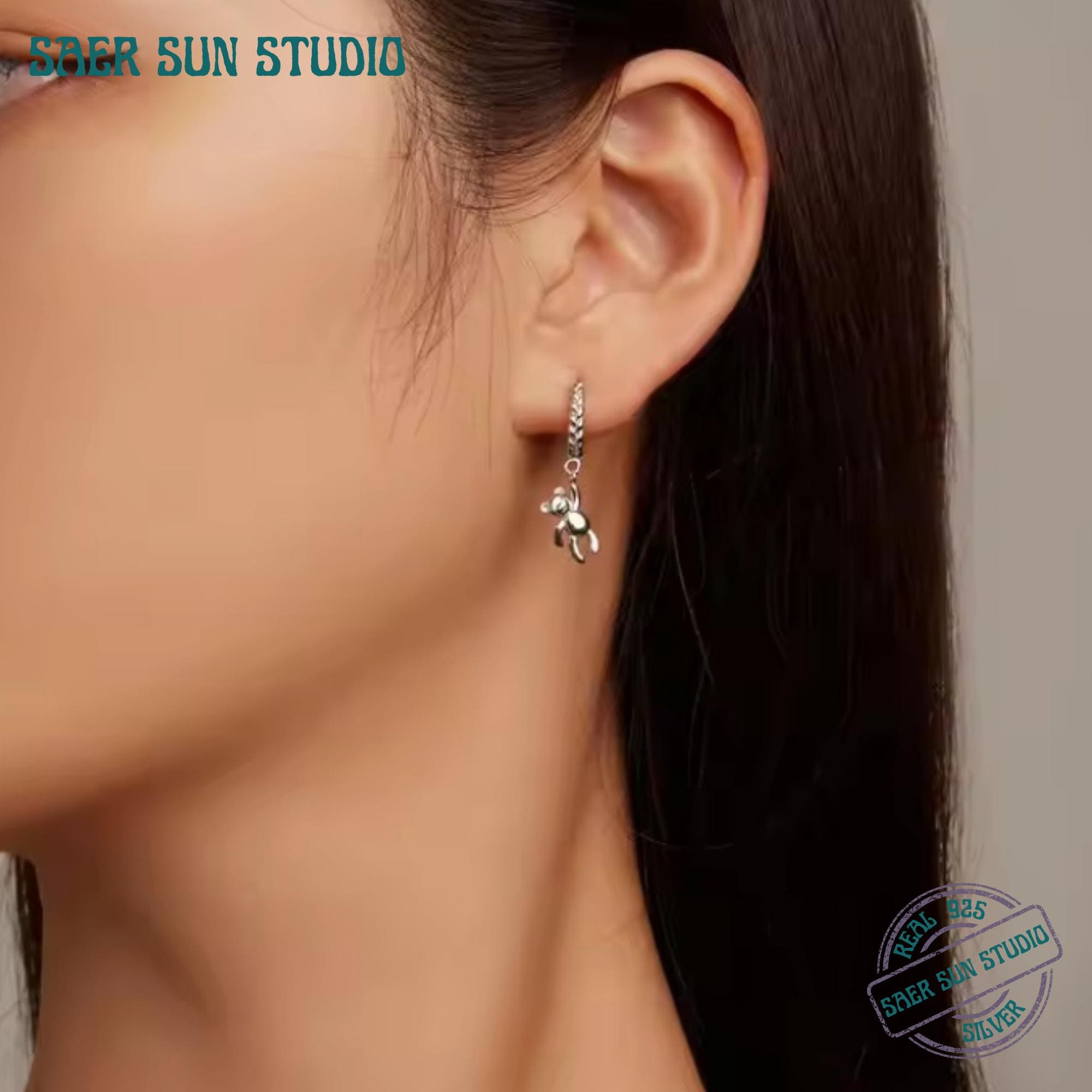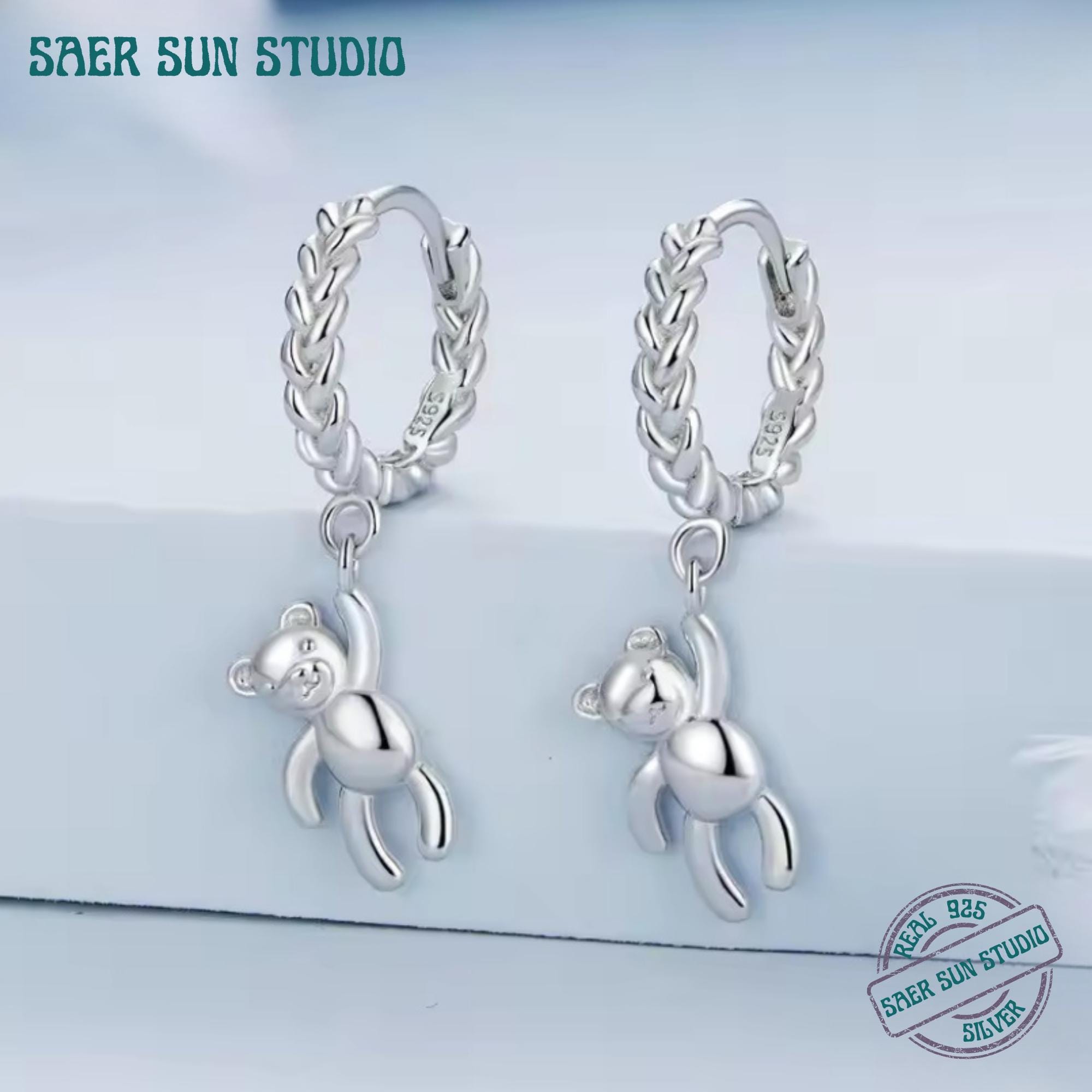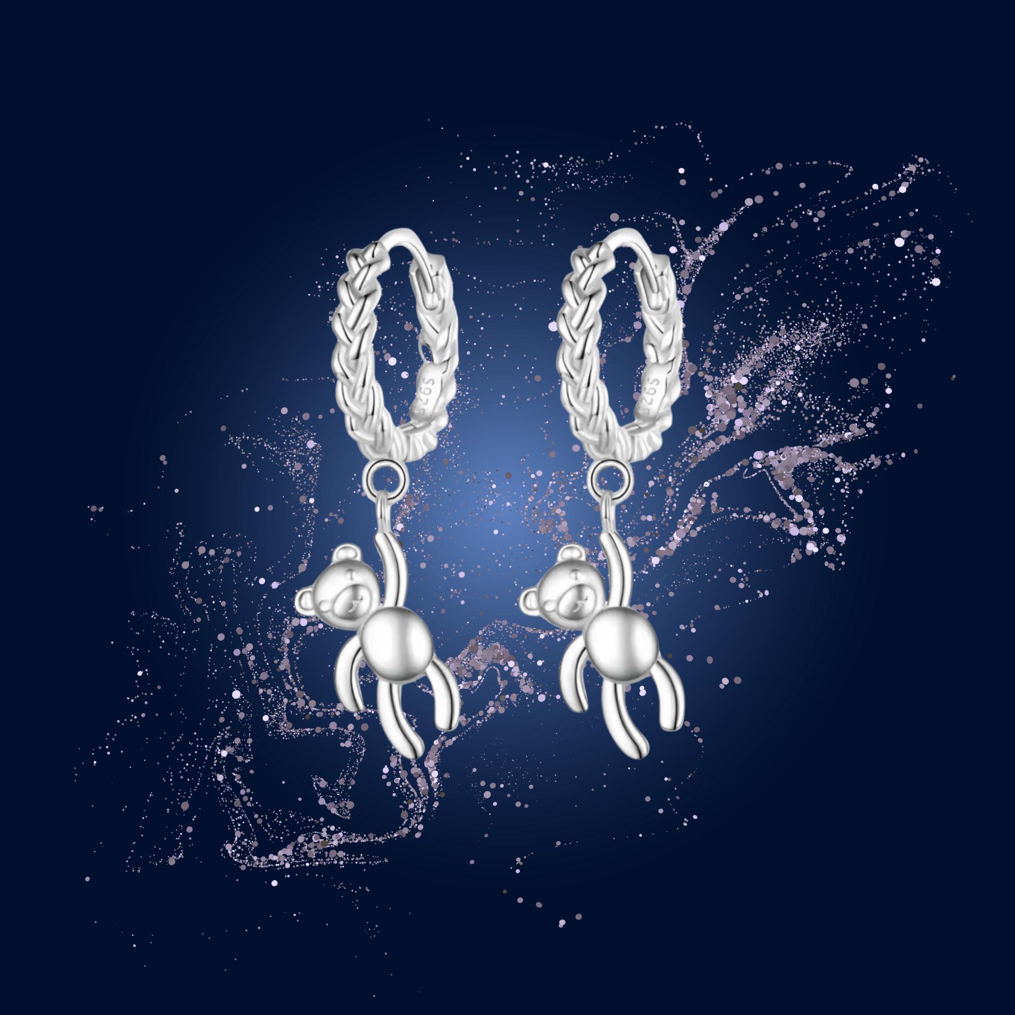 These 925 sterling silver teddy bear earrings are designed to symbolize warmth, affection, and gentle love. Featuring a dainty braided hoop and an adorable dangling teddy charm, this piece blends cute kawaii aesthetics with timeless silver elegance—perfect for everyday wear or as a meaningful gift for someone special.