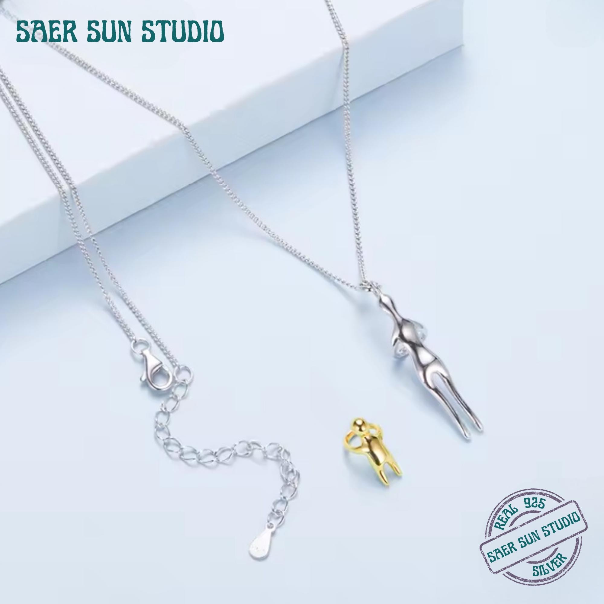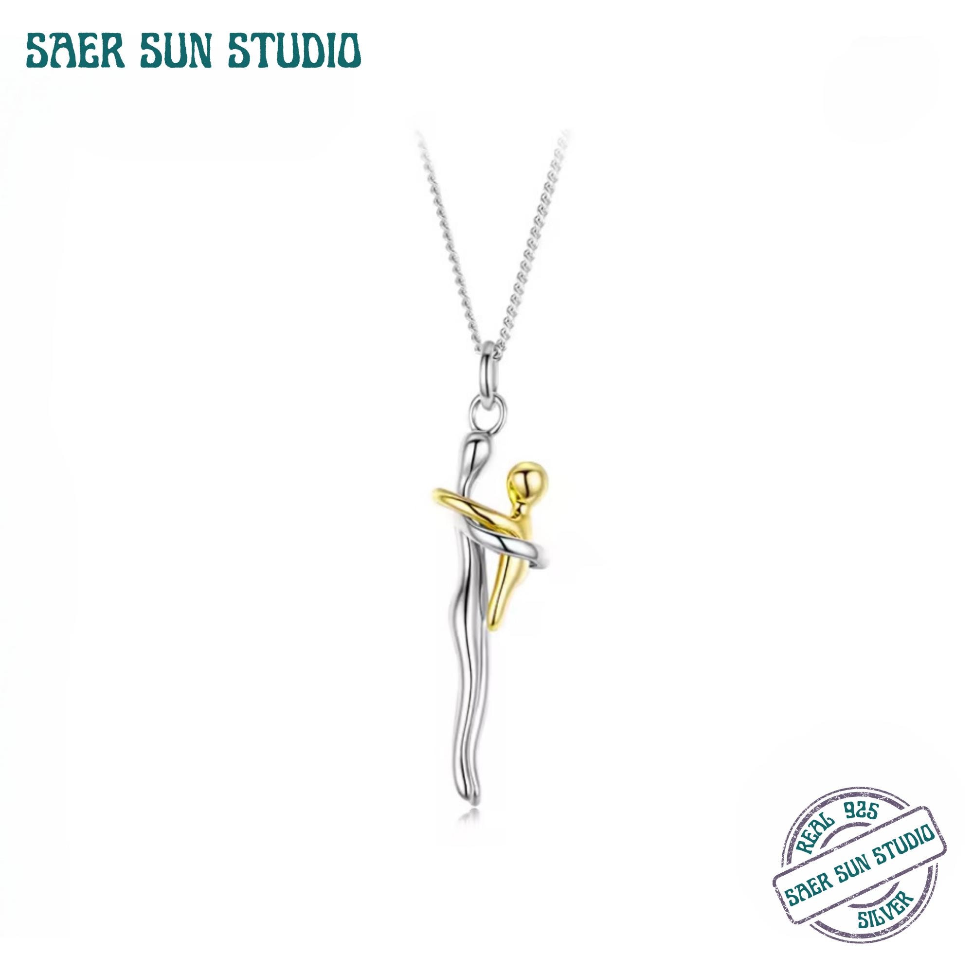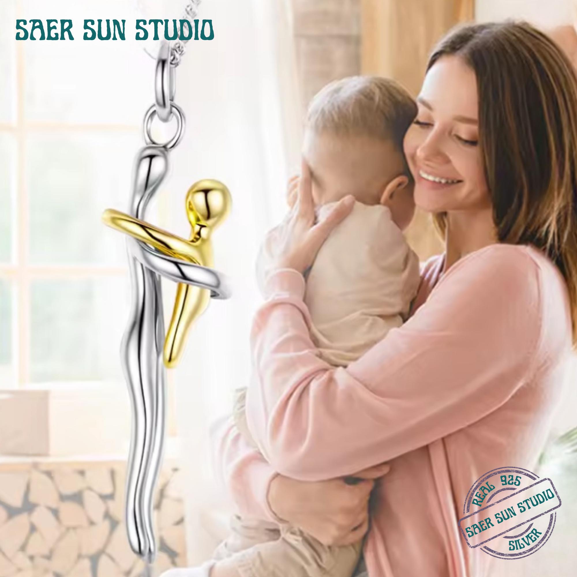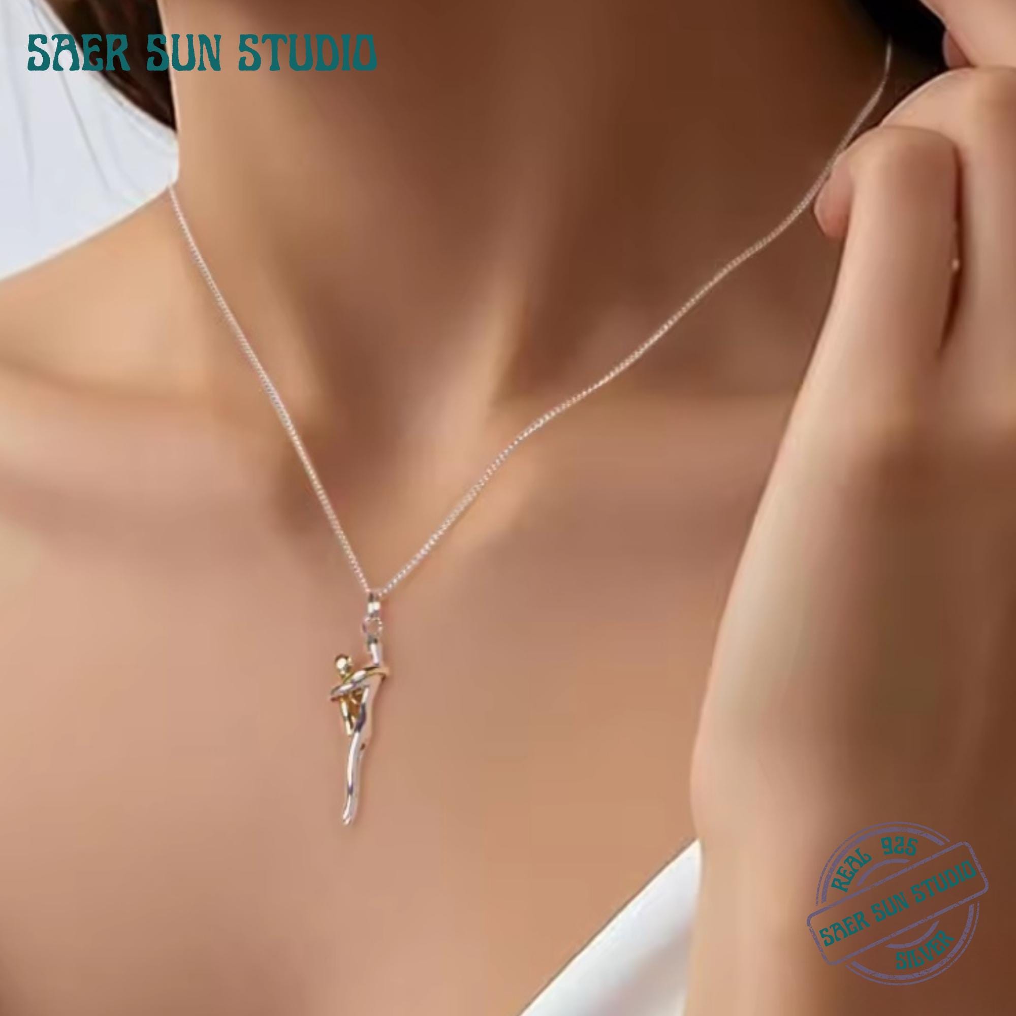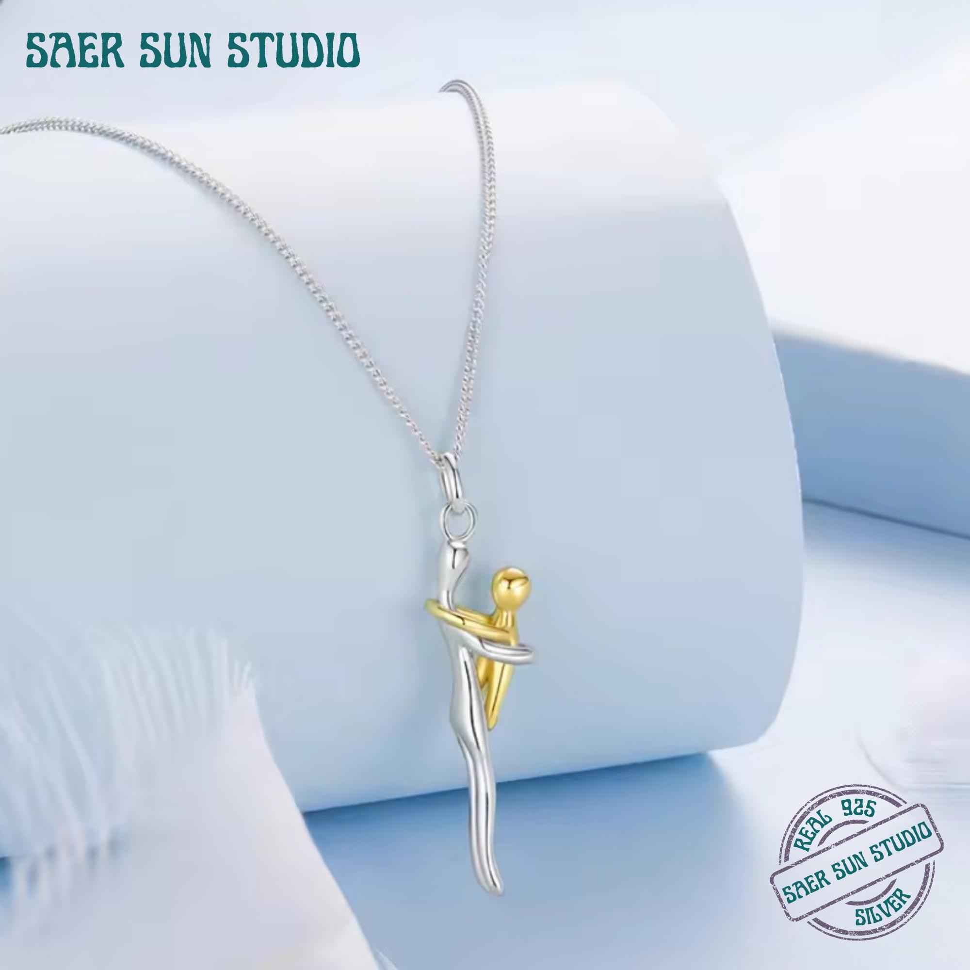 This 925 sterling silver hug necklace features a graceful two-tone design symbolizing connection, comfort, and unconditional love. The intertwined silver and gold figures represent an embrace—making this pendant a meaningful piece for relationships, self-love, motherhood, or emotional grounding.