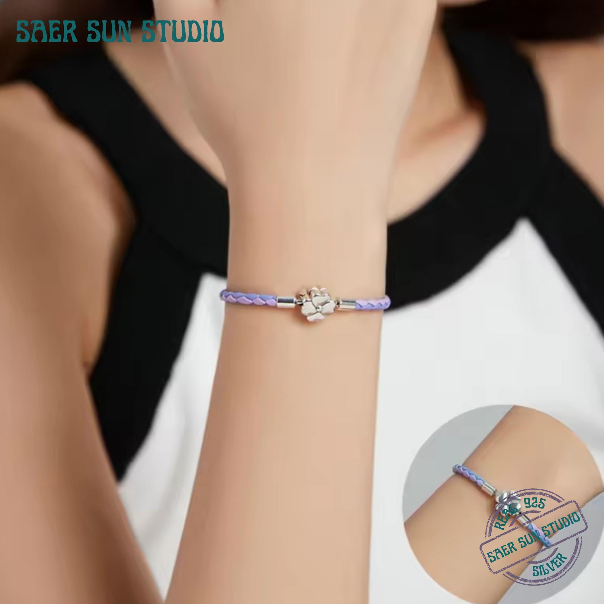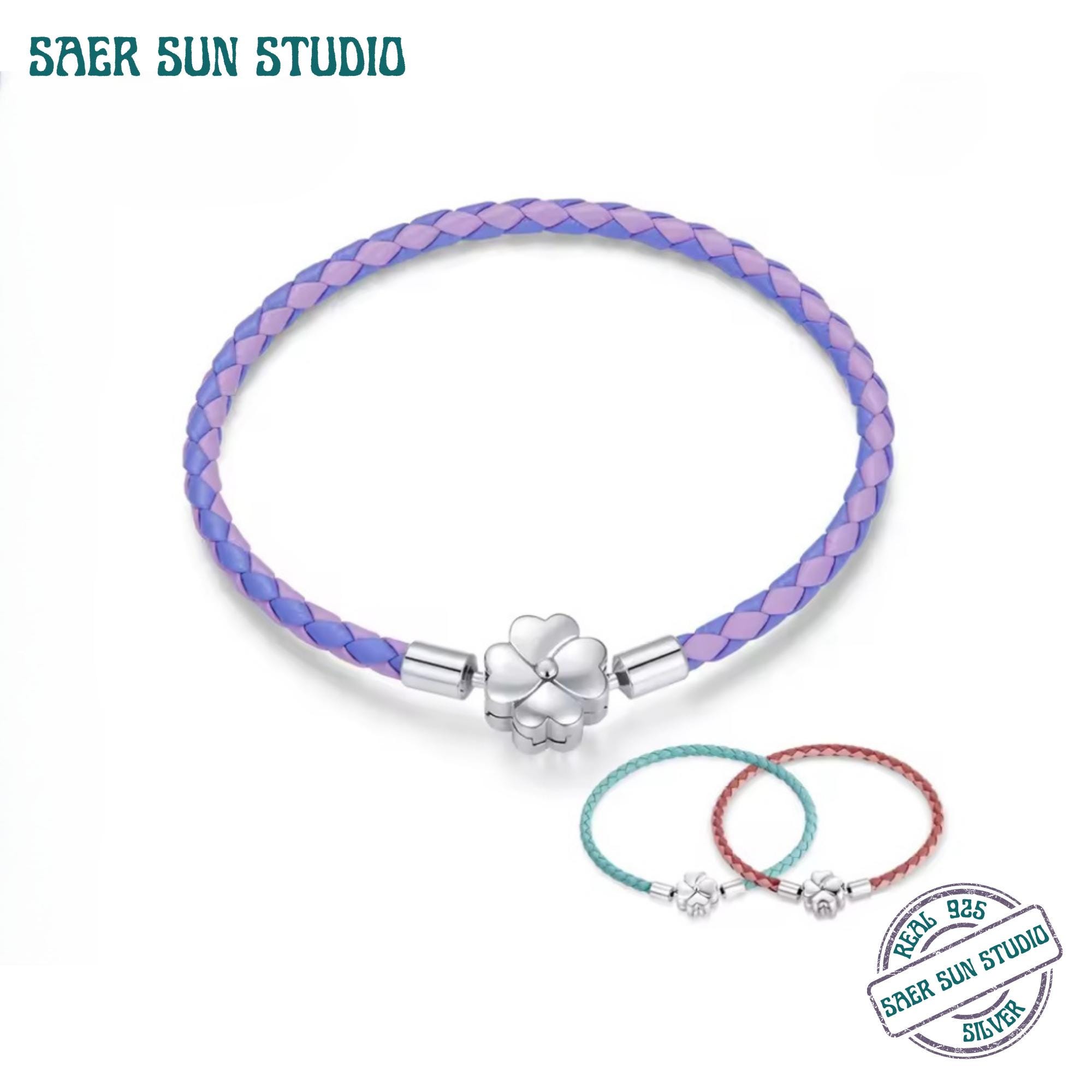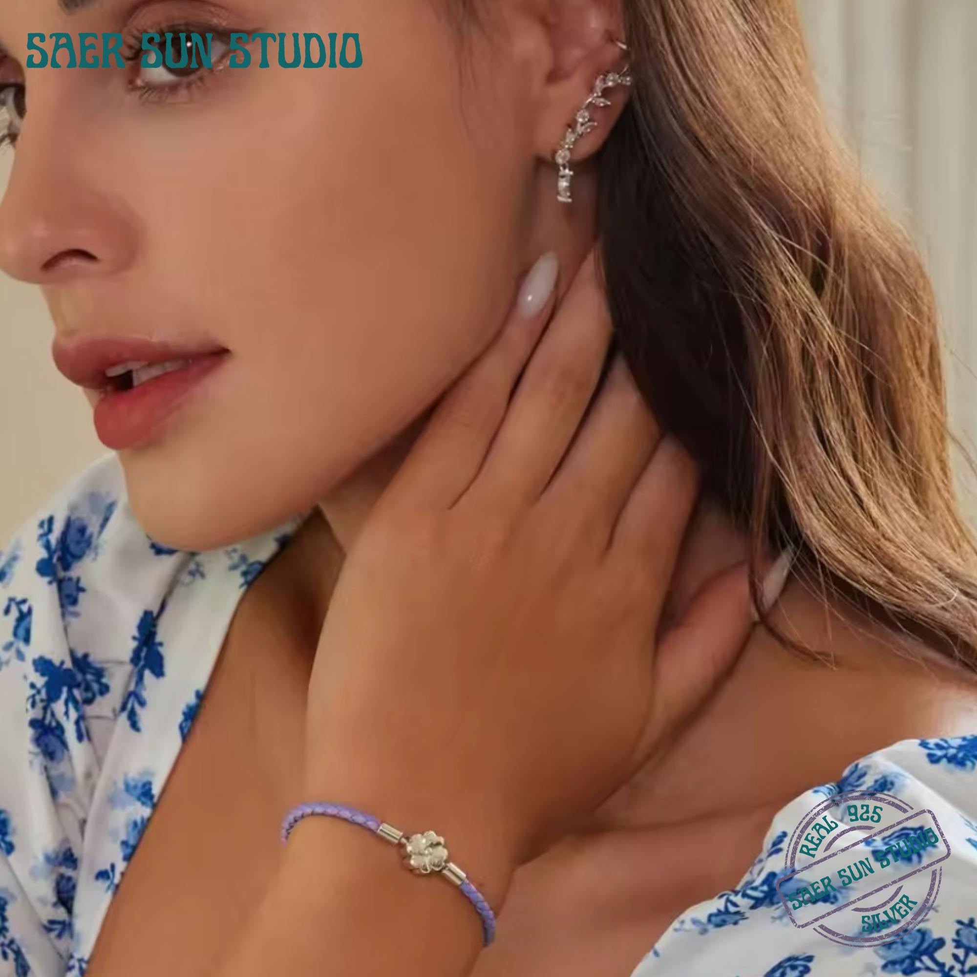 Invite luck, protection, and new beginnings into your everyday ritual with this 925 Sterling Silver Four Leaf Clover Bracelet, crafted with genuine braided leather and a symbolic clover clasp. Designed as a charm bracelet base, this piece blends timeless meaning with modern elegance—perfect for layering your favorite charms or wearing beautifully on its own.