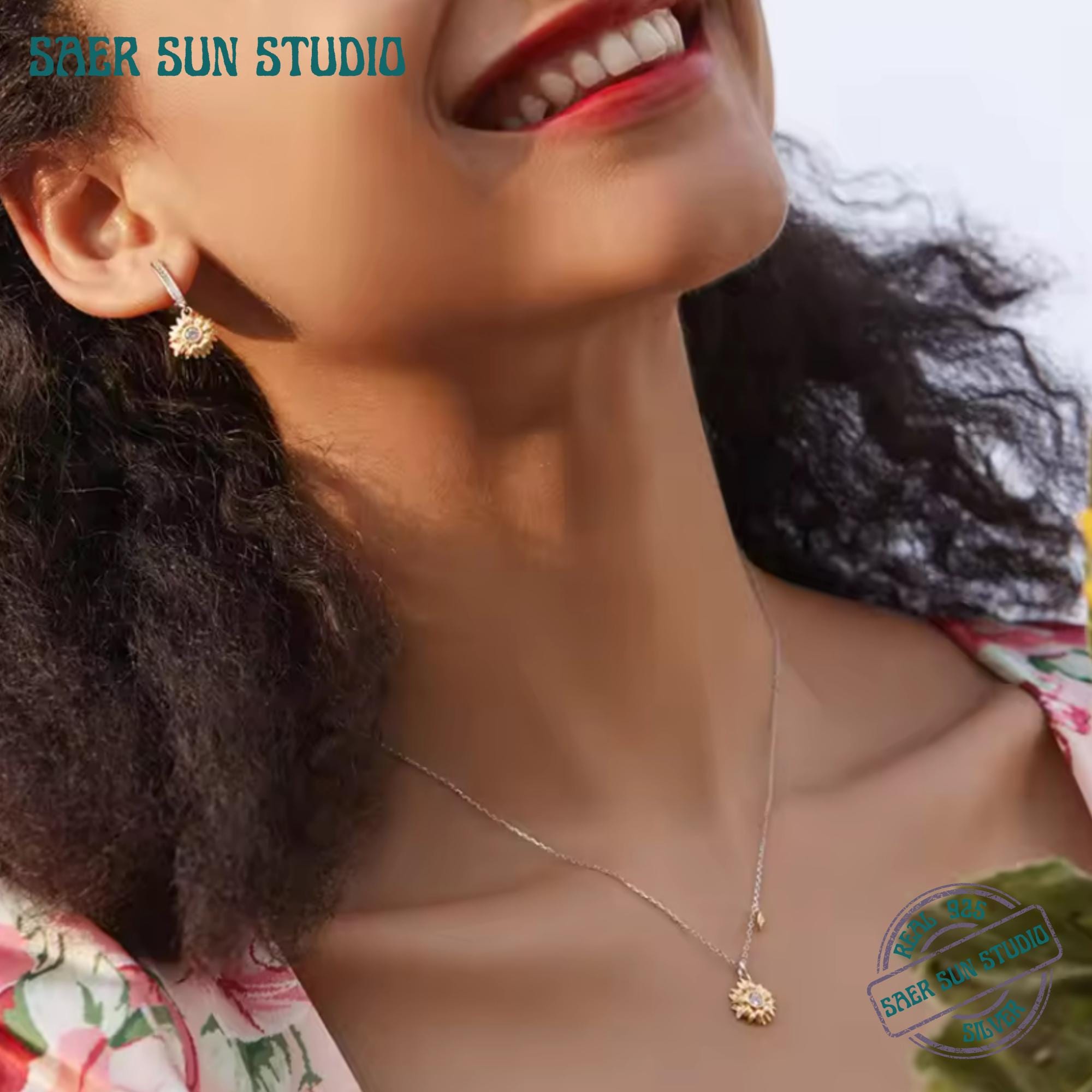 Bring warmth, abundance, and positive energy into your everyday style with this Solid 925 Sterling Silver Sunflower Necklace, beautifully finished in a soft gold tone. Inspired by the sunflower’s symbolism of happiness, growth, and good fortune, this delicate pendant necklace is designed to uplift and protect while adding effortless elegance to any outfit.