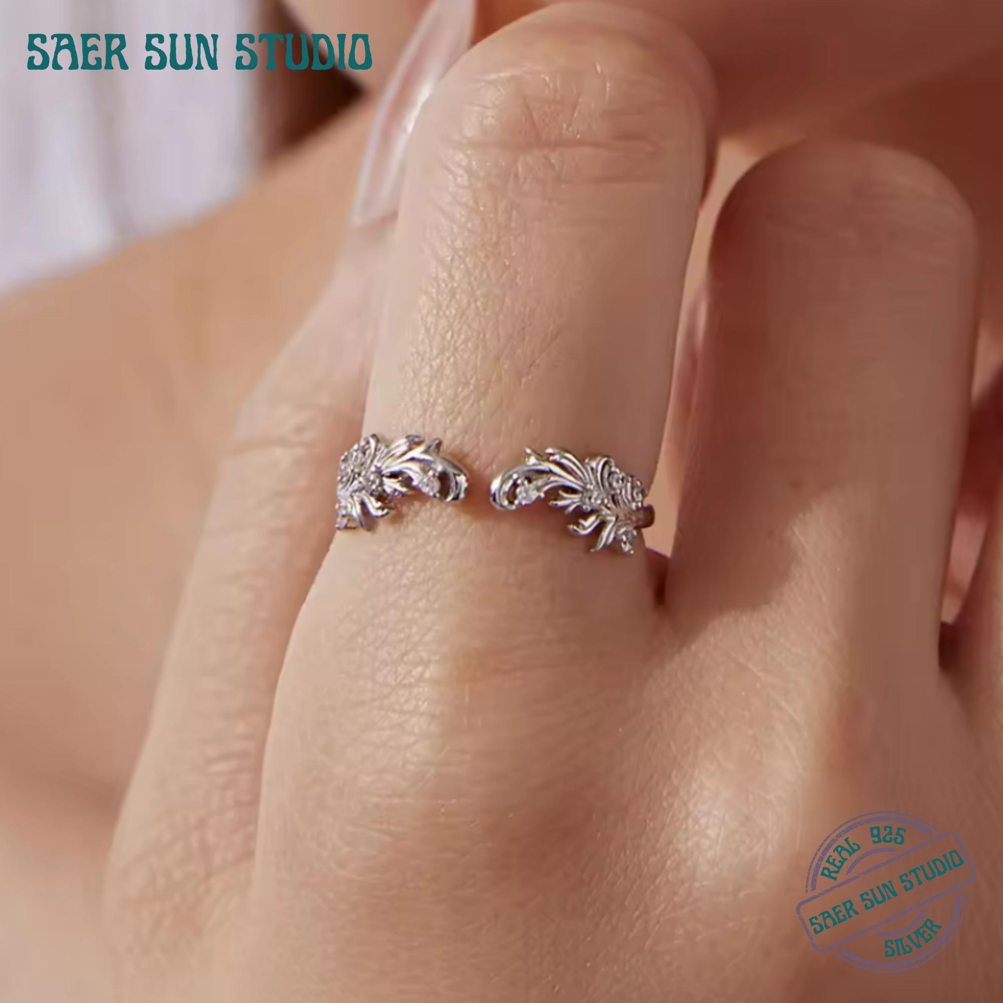 This authentic 925 sterling silver scrollwork open ring features an elegant vintage leaf and plant motif, symbolizing protection, grounding, and inner strength. Designed with pavé-set cubic zirconia stones, this adjustable ring reflects light beautifully while maintaining a timeless, nature-inspired aesthetic. Perfect for everyday wear or meaningful gifting, this piece blends artisan craftsmanship with symbolic design.