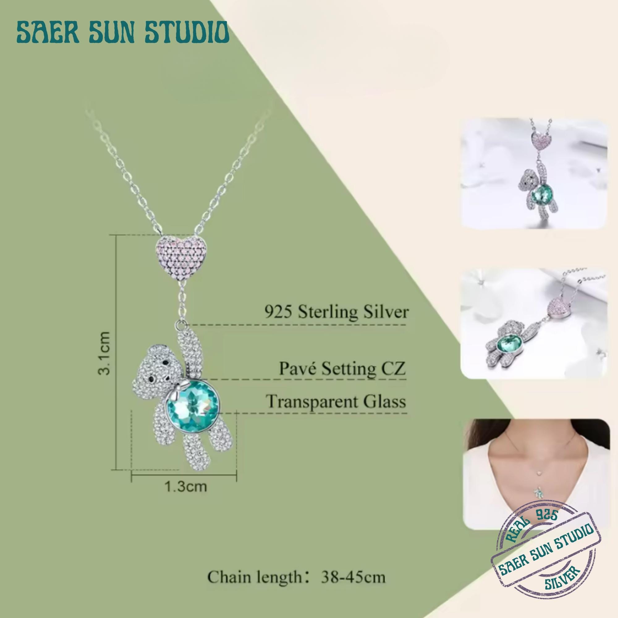 This 925 Sterling Silver Pink CZ Heart & Cute Bear Necklace features a sparkling pink heart paired with an adorable pavé-set bear pendant, symbolizing affection, care, and joyful love. Crafted in genuine sterling silver and finished with shimmering cubic zirconia, this piece blends charm and elegance in a design that instantly melts hearts.